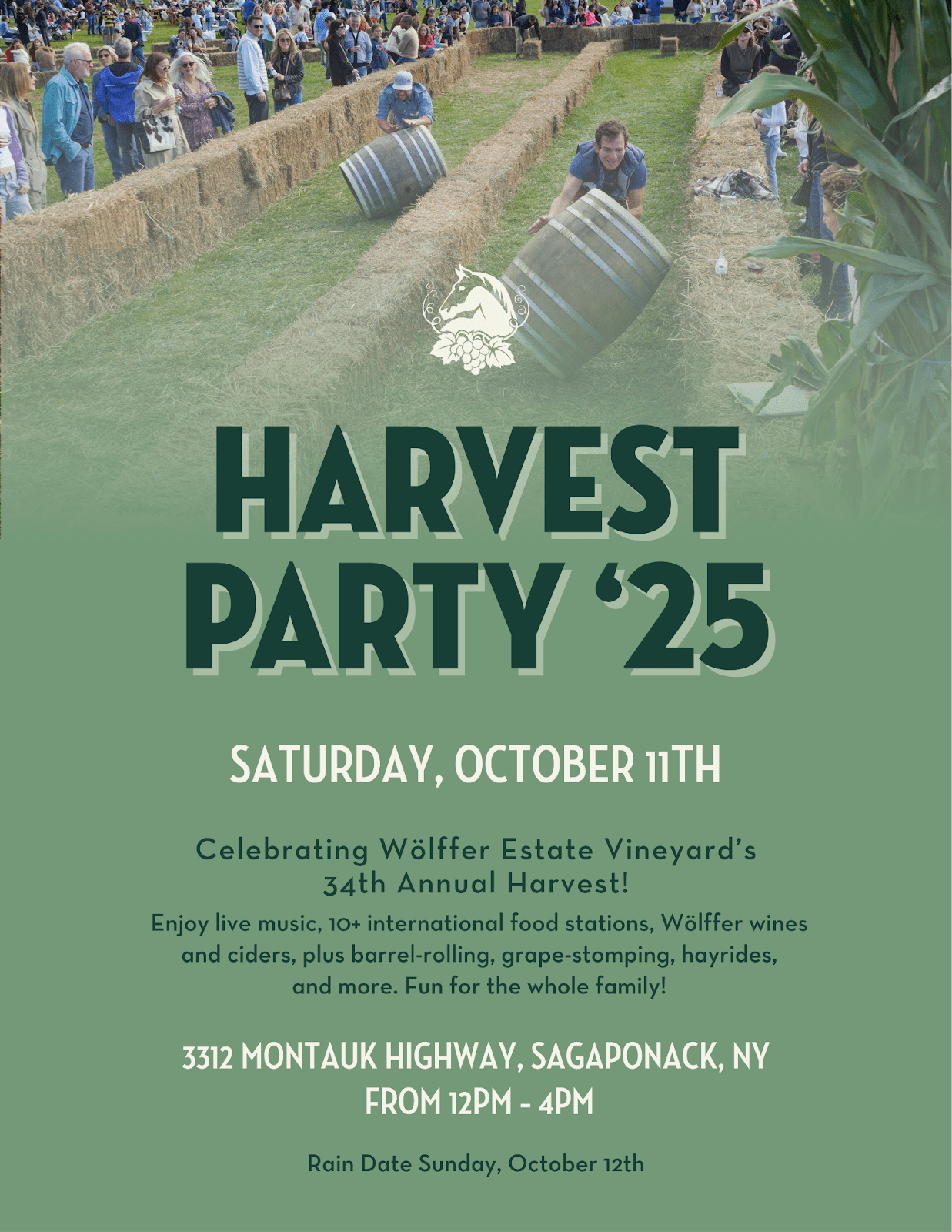 Saturday, October 11th: The Wine Stand 3312 Montauk Hwy, Sagaponack, NY 11962 SOLD OUT Time: 12:00 pm – 4:00pm Rain Date: Sunday, October 12th Enjoy the perfect day with family and friends as we celebrate the hard work of Harvest season while enjoying the beauty of our Sagaponack vineyard on Saturday, October 11th!